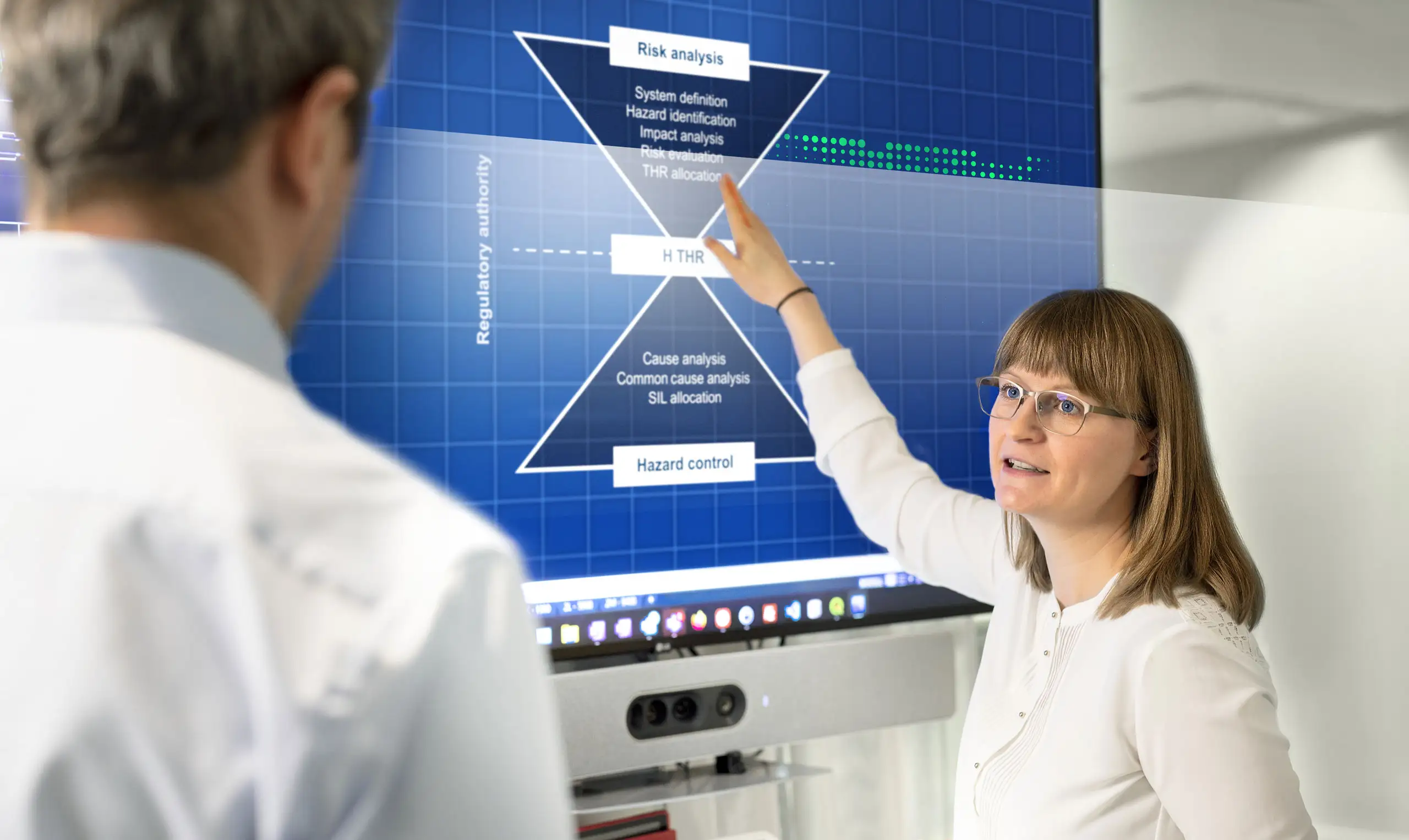 In intensiven, kompakten Trainingseinheiten vermitteln wir komplexe Sachverhalte so einfach und verständlich wie möglich. Ob Ingenieur, Projektverantwortliche, Management oder Top-Entscheider – unsere Trainings erweitern Ihr Wissen rund um Sicherheitsanforderungen, Gefährdungsanalysen und Zulassungsverfahren. Dadurch wird Ihnen eine zielgerichtete Entscheidungsgrundlage für Ihre Sicherheitsprozesse geschaffen.